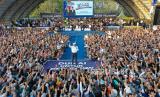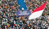 REPUBLIKA.CO.ID,  DUMAI. --  Calon presiden nomor urut 1 Anies Baswedan (tengah) menyampaikan orasinya saat kampanye akbar di Taman Bukit Gelanggang, Dumai, Riau, Sabtu (27/1/2024).