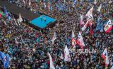 Foto udara calon presiden nomor urut 2, Prabowo Subianto berorasi saat kampanye akbar bertajuk kirab kebangsaan di Semarang, Jawa Tengah, Ahad (28/1/2024). Dalam orasi politiknya Prabowo berjanji dan bertekad akan memaksimalkan pengelolaan kekayaan alam Indonesia yang melimpah untuk mensejahterakan seluruh rakyat Indonesia agar tidak ada lagi kemiskinan di Indonesia. (FOTO : ANTARA FOTO/Aji Styawan)