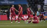 Ekspresi kekecewaan pemain Indonesia usai dikalahkan Australia pada pertandingan sepak bola babak 16 besar Piala Asia antara Australia dan Indonesia di Stadion Jassim Bin Hamad di Doha, Qatar, Ahad (28/1/2024). Indonesia harus mengakui keunggulan Australia setelah kalah 0-4 di babak 16 besar Piala Asia. (FOTO : AP Photo/Aijaz Rahi)
