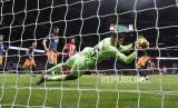 Penjaga gawang Valencia Giorgi Mamardashvili menangkap bola saat pertandingan sepak bola LaLiga Spanyol antara Atletico Madrid dan Valencia CF, di Madrid, Spanyol, Senin (29/1/2024) dini hari WIB. (FOTO : EFE)