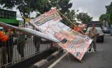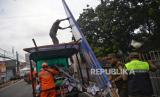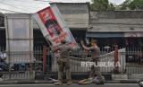 Petugas satpol PP bersama unsur terkait lainnya menertibkan APK yang melanggar ketentuan yang bertujuan untuk menjaga kebersihan dan estetika kota.