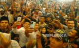 Calon wakil presiden nomor urut 2 Gibran Rakabuming Raka (tengah) berfoto dengan para pendukung saat dialog Gibran Mendengar di Slawi, Kabupaten Tegal, Jawa Tengah, Senin (29/1/2024). (FOTO : ANTARA FOTO/Oky Lukmansyah)