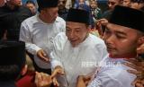 REPUBLIKA.CO.ID, PEKALONGAN -- Habib Muhammad Luthfi bin Ali bin Yahya yang juga Pembina Tim Kampanye Nasional (TKN) Prabowo-Gibran bersalaman dengan relawan saat Istighotsah dan doa bersama di Dupan Square, Kota Pekalongan, Jawa Tengah, Senin (29/1/2024).