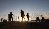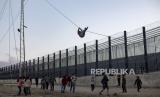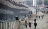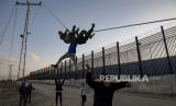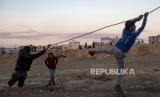 REPUBLIKA.CO.ID, JALUR GAZA SELATAN. -- Pengungsi Anak-anak Palestina bermain di dekat perbatasan Palestina-Mesir di kamp Rafah, Jalur Gaza selatan, (29/1/2024).