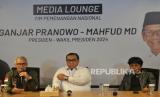 REPUBLIKA.CO.ID, JAKARTA. -- Sekretaris TPN Ganjar-Mahfud Hasto Kristiyanto didampingi Ketua Tim Penjadwalan TPN Ganjar-Mahfud Aria Bima memberikan keterangan terkait persiapan kampanye akbar pasalon Ganjar-Mahfud di Media Lounge TPN, Jakarta, Selasa (30/1/2024).