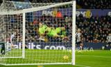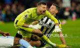 Kiper Newcastle Martin Dubravkamenahan bola saat pertandingan sepak bola Liga Utama Inggris antara Aston Villa FC dan Newcastle United, di Birmingham, Inggris, Rabu (31/1/2024) dini hari WIB (FOTO : EPA)