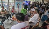 Calon wakil presiden nomor urut 2 Gibran Rakabuming Raka (kiri) berdialog dengan sejumlah anak muda di Cibinong, Kabupaten Bogor, Jawa Barat, Rabu (31/1/2024). Dalam kunjungan tersebut Gibran berdiskusi dan menyerap aspirasi kaum milenial diantaranya komunitas anak muda seperti komunitas cosplayer, komunitas E-sport dan komunitas anak muda pecinta budaya. (FOTO : ANTARA FOTO/Yulius Satria Wijaya)