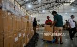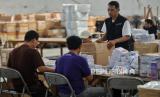 Petugas mengemas surat suara di Gudang Logistik KPU Jakarta Selatan, Jakarta, Rabu (31/1/2024). KPU DKI Jakarta bakal mendistribusikan logistik Pemilu 2024 ke Tempat Pemungutan Suara (TPS) pada H-1 atau 13 Februari mendatang. Menurut data dari Koordinator Divisi Perencanaan dan Logistik KPU DKI Jakarta mencatat jumlah total surat suara yang selesai dilipat sebanyak 33.747.852 lembar, untuk Pemilihan Presiden (Pilpres) dan Pemilihan Anggota Legislatif (Pileg) 2024 yang terdiri dari Anggota Legislatif DPR, DPD dan DPRD DKI Jakarta. (FOTO : Republika/Thoudy Badai)