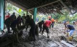 REPUBLIKA.CO.ID -- Relawan membersihkan lumpur dari rumah yang tertimpa longsor di Desa Hargomulyo, Gedangsari, Gunungkidul, DI Yogyakarta, Kamis (1/2/2024).