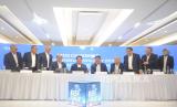 Direktur Information Technology BSI Saladin Effendi, Direktur Treasury & International Banking BSI Moh Adib, Direktur Retail Banking BSI Ngatari, Direktur Risk Management BSI Grandhis H. Harumansyah, Direktur Utama BSI Hery Gunardi, Wakil Direktur Utama BSI Bob T. Ananta, Direktur Finance & Strategy BSI Ade Cahyo Nugroho, Direktur Sales & Distribution BSI Anton Sukarna, Direktur Wholesale Transaction Banking BSI Zaidan Novari, dan Direktur Compliance & Human Capital BSI Tribuana Tunggadewi (dari kiri) saat pemaparan kinerja triwulan IV 2023 di The Tower Jakarta, Kamis (1/2/2024). (FOTO : Dok.Republika)