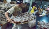 Aktivitas pekerja mengemas dodol keranjang di pabrik dodol Tekkie, Jalan Pajagalan, Kota Bandung, Jawa Barat, Kamis (1/2/2024).Jelang Tahun Baru Imlek 2024 produksi dodol keranjang atau dodol imlek mencapai 5.000 potong per hari karena tingginya permintaan dari konsumen. Harga dodol dijual dari Rp 15.000 hingga Rp 25.000 tergantung ukuran. (FOTO : Edi Yusuf/Republika)