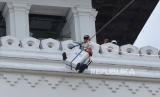 Atraksi penanganan logistik pemilu 2024 saat Apel Kesiapsiagaan Bencana Pada Masa Pemilu 2024 di depan Gedung Sate, Jalan Diponegoro, Kota Bandung, Jumat (2/2/2024). Apel besar tersebut merupakan inisiasi BPBD dan seluruh unsur terkait guna mendukung penyelenggaraan pemilu yang aman dari bencana akibat cuaca ekstrem yang dapat mengganggu kelancaran pemilu. (FOTO : Edi Yusuf/Republika)