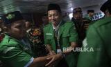 REPUBLIKA.CO.ID, Ketua Umum Pimpinan Pusat Gerakan Pemuda (GP) Ansor terpilih periode 2024-2029 Addin Jauharuddin memanjatkan doa seusai Kongres XVI GP Ansor di atas Kapal Pelni KM Kelud yang berlayar di Laut Jawa, Jumat (2/2/2024).