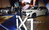 Mobil BMW iX1 terbaru dipamerkan saat peluncuran di Jakarta, Jumat (2/1/2024). BMW Indonesia resmi meluncurkan dua mobil listrik terbarunya yakni BMW iX1 dan iX xDrive50. (FOTO : Dok Republika)