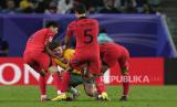 REPUBLIKA.CO.ID, QATAR -- Korea Selatan berhadapan dengan Australia pada pertandingan sepak bola perempat final Piala Asia di Stadion Al Janoub di Al Wakrah, Qatar, Jumat (2/2/2024).