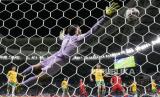 Penjaga gawang Australia Mathew Ryan gagal menghalau tendangan pemain Korea Selatan Son Heung Min pada pertandingan sepak bola perempat final Piala Asia melawan Korea Selatan di Stadion Al Janoub di Al Wakrah, Qatar, Jumat (2/2/2024). Korea Selatan menang dramatis atas Australia dengan skor 2-1. (FOTO : AP Photo/Aijaz Rahi)