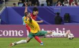 Pemain Korea Selatan Lee Kang-in melepaskan tendangan melewati adangan pemain Austalia pada pertandingan sepak bola perempat final Piala Asia di Stadion Al Janoub di Al Wakrah, Qatar, Jumat (2/2/2024). Korea Selatan menang dramatis atas Australia dengan skor 2-1. (FOTO : AP Photo/Thanassis Stavrakis)