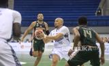 REPUBLIKA.CO.ID, YOGYAKARTA -- Satria Muda Pertamina berhadapan dengan Bima Perkasa Jogja pada pertandingan Indonesian Basketball League (IBL) 2024 di GOR Amongrogo, Yogyakarta, Sabtu (3/2/2024). Satria Muda Pertamina mengalahkan Bima Perkasa Jogja dengan skor 85-80.
