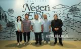 Erick Thohir bersama Gibran Rakabuming Raka mendengarkan penjelasan Ragowo Hediprasetyo Djojohadikusumo atau Didit saat menghadiri Festival Negeri Elok di Fatmawati, Jakarta Selatan, Sabtu (3/2/2024). Festival Negeri Elok yang diinisiasi oleh putra Prabowo, Ragowo Hediprasetyo Djojohadikusumo atau Didit, menampilkan beragam karya seni dari seni lukis hingga fashion. (FOTO : Dok Republika)