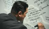 Erick Thohir membubuhkan pesan saat menghadiri Festival Negeri Elok di Fatmawati, Jakarta Selatan, Sabtu (3/2/2024). Festival Negeri Elok yang diinisiasi oleh putra Prabowo, Ragowo Hediprasetyo Djojohadikusumo atau Didit, menampilkan beragam karya seni dari seni lukis hingga fashion. (FOTO : Dok Republika)