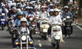 Konvoi berangkat dari Mal Senayan City pada Ahad (4/2/2024) pukul 06.30 WIB, menggunakan vespa Primavera berwarna putih dan membonceng istrinya Selvi Ananda.