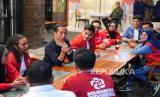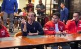 Presiden RI Joko Widodo bertemu dengan sejumlah pengurus PSI, diantaranya Ketum Kaesang Pangarep, dan sejumlah kader muda PSI di Braga Permai, Bandung, Jawa Barat, Sabtu (3/2/2024) malam. Jokowi mengaku sudah lama senang dengan PSI. Mengingat PSI identik dengan partai anak muda. Jokowi menyakini jika PSI nantinya akan memperjuangkan pemerintahan yang baik. (FOTO : Dok Republika)