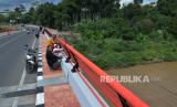 Pengendara berhenti sejenak untuk berswafoto di jembatan Callender Hamilton (DH) atau Babakan Sapan (BBS) yang dibangun Kementerian Pekerjaan Umum dan Perumahan Rakyat (PUPR) di Batujajar, Kabupaten Bandung Barat, Ahad (4/2/2024). Jembatan yang melintang sepanjang 150 meter di atas Sungai Citarum yang diresmikan Presiden Joko Widodo (Jokowi) pekan lalu ini, diharapkan dapat memperlancar lalu lintas di kawasan tersebut dengan aman dan nyaman. (FOTO : Edi Yusuf/Republika)