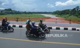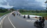 Pengendara motor melintasi Jembatan Callender Hamilton (DH) atau Babakan Sapan (BBS) yang dibangun Kementerian Pekerjaan Umum dan Perumahan Rakyat (PUPR) di Batujajar, Kabupaten Bandung Barat, Ahad (4/2/2024). Jembatan yang melintang sepanjang 150 meter di atas Sungai Citarum yang diresmikan Presiden Joko Widodo (Jokowi) pekan lalu ini, diharapkan dapat memperlancar lalu lintas di kawasan tersebut dengan aman dan nyaman. (FOTO : Edi Yusuf/Republika)