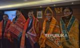 REPUBLIKA.CO.ID, JAKARTA -- Wakil Menteri BUMN Kartika Wirjoatmodjo, Menteri Pemuda dan Olahraga Dito Ariotedjo, Menko Marves Luhut Binsar Pandjaitan, Menteri Pariwisata dan Ekonomi Kreatif/Badan Pariwisata dan Ekonomi Kreatif Sandiaga Uno dan Direktur Utama InJourney Dony Oskaria memberikan keterangan pers jelang F1 PowerBoat Danau Toba di Jakarta, Rabu (7/2/2024).