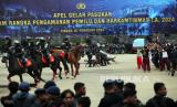 REPUBLIKA.CO.ID, BOGOR -- Personel Korps Brimob Polri mengamankan situasi saat simulasi pengamanan pemilu di di Pusat Latihan Brimob, Cikeas, Kabupaten Bogor, Jawa Barat, Rabu (7/2/2024). Simulasi tersebut untuk meningkatkan kemampuan personel pengamanan serta mengantisipasi potensi gangguan keamanan jelang penyelenggaraan Pemilu 2024.