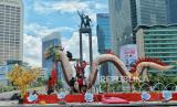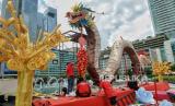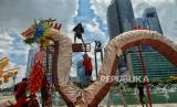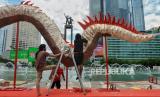 REPUBLIKA.CO.ID, JAKARTA -- Pekerja mengerjakan pembuatan instalasi naga dan ornamen bernuansa Imlek di Bundaran Hotel Indonesia (HI), Jalan Sudirman-Thamrin, Menteng, Jakarta Pusat, Rabu (7/2/2024).