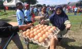 REPUBLIKA.CO.ID, KEDIRI -- Warga menerima telur saat pembagian telur dan ayam gratis di Desa Deyeng, Kediri, Jawa Timur, Kamis (8/2/2024).