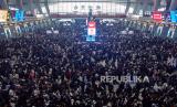 REPUBLIKA.CO.ID, HANGZHOU -- Wisatawan menunggu kereta di stasiun kereta api di Hangzhou di provinsi Zhejiang, Cina Timur, Kamis (8/2/2024).