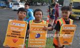 REPUBLIKA.CO.ID, BANDUNG. -- Sejumlah anak dari warga setempat bersama para relawan perlintasan dari komunitas Pecinta kereta Api, Edan Sepur melakukan sosialisasi disiplin perlintasan kereta api, di Jalan Laswi, Kota Bandung, Jawa Barat, Jumat (9/2/2024).