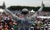 Pendukung pasangan calon presiden dan wakil presiden nomor urut 1 Anies Baswedan-Muhaimin Iskandar mengikuti kampanye akbar di Stadion Untung Suropati, Pasuruan, Jawa Timur, Jumat (8/2/2024). Dalam Kampanye yang dikuti ribuan simpatisan tersebut Anies Baswedan dan Muhaimin Iskandar (AMIN) mengajak untuk melakukan perubahan dengan menggunakan hak pilih pada 14 Februari 2024 dan memilih capres-cawapres nomor urut 1. (FOTO : ANTARA FOTO/Umarul Faruq)