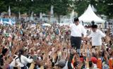 Pasangan calon presiden dan wakil presiden nomor urut 1 Anies Rasyid Baswedan (kiri) dan Muhaimin Iskandar (kanan) menyapa pendukungnya saat kampanye akbar di Stadion Untung Suropati, Pasuruan, Jawa Timur, Jumat (8/2/2024). Dalam Kampanye yang dikuti ribuan simpatisan tersebut Anies Baswedan dan Muhaimin Iskandar (AMIN) mengajak untuk melakukan perubahan dengan menggunakan hak pilih pada 14 Februari 2024 dan memilih capres-cawapres nomor urut 1. (FOTO : ANTARA FOTO/Umarul Faruq)