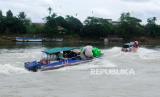 REPUBLIKA.CO.ID, KAPUAS HULU. -- Dua perahu cepat berpenumpang melaju di sungai di Putussibau, Kabupaten Kapuas Hulu, Kalimantan Barat, Jumat (9/2/2024).