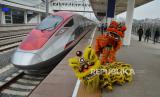 REPUBLIKA.CO.ID, JAKARTA. -- Atraksi Barongsai menyambut kedatangan kereta cepat atau woosh, di Stasiun Kereta Cepat Padalarang, Kabupaten Bandung, Ahad (10/2/2024). PT KCIC menggelar antraksi batongsai di stasiun dalam rangka memeriahkan Tahun Baru Imlek 2574.