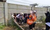 Pendukung Calon Presiden dan Calon Wakil Presiden nomor urut 1 Anies Baswedan-Muhaimin Iskandar menerobos pagar beton saat akan menghadiri kampanye akbar di Jakarta International Stadium, Jakarta, Sabtu (10/2/2024). Kampanye akbar bertajuk Bersatu, Berani, Berubah yang merupakan rangkaian kampanye terakhir sebelum masa tenang Pilpres 2024 tersebut dihadiri simpatisan AMIN dari berbagai daerah. (FOTO : Republika/Edwin Dwi Putranto)