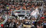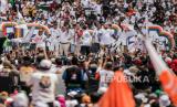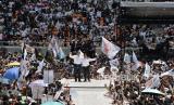 Calon Presiden dan Calon Wakil Presiden nomor urut 1 Anies Baswedan-Muhaimin Iskandar menghadiri kampanye akbar di Jakarta International Stadium, Jakarta, Sabtu (10/2/2024). Kampanye akbar bertajuk Bersatu, Berani, Berubah yang merupakan rangkaian kampanye terakhir sebelum masa tenang Pilpres 2024 tersebut dihadiri simpatisan AMIN dari berbagai daerah. (FOTO : Republika/Edwin Dwi Putranto)