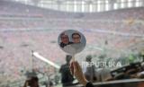 Simpatisan membawa kipas bergambar Calon Presiden dan Calon Wakil Presiden nomor urut 1 Anies Baswedan dan Muhaimin Iskandar saat kampanye akbar di Jakarta International Stadium, Jakarta, Sabtu (10/2/2024). Kampanye akbar bertajuk Bersatu, Berani, Berubah yang merupakan rangkaian kampanye terakhir sebelum masa tenang Pilpres 2024 tersebut dihadiri oleh ratusan ribu simpatisan dari berbagai daerah. (FOTO : Republika/Putra M. Akbar)