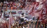 Pendukung Calon Presiden dan Calon Wakil Presiden nomor urut 1 Anies Baswedan-Muhaimin Iskandar menghadiri kampanye akbar di Jakarta International Stadium, Jakarta, Sabtu (10/2/2024). Kampanye akbar bertajuk Bersatu, Berani, Berubah yang merupakan rangkaian kampanye terakhir sebelum masa tenang Pilpres 2024 tersebut dihadiri simpatisan AMIN dari berbagai daerah. (FOTO : Republika/Edwin Dwi Putranto)