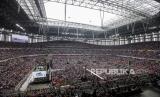 Sejumlah simpatisan menghadiri kampanye akbar Calon Presiden dan Calon Wakil Presiden nomor urut 1 Anies Baswedan dan Muhaimin Iskandar di Jakarta International Stadium, Jakarta, Sabtu (10/2/2024). Kampanye akbar bertajuk Bersatu, Berani, Berubah yang merupakan rangkaian kampanye terakhir sebelum masa tenang Pilpres 2024 tersebut dihadiri oleh ratusan ribu simpatisan dari berbagai daerah. (FOTO : Republika/Putra M. Akbar)