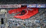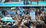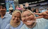 Pendukung capres nomor urut 2 Prabowo Subianto mengahadiri acara kampanye akbar bertajuk Pesta Rakyat untuk Indonesia Maju di Stadion Utama Gelora Bung Karno (SUGBK), Jakarta, Sabtu (10/2/2024). Dalam kesempatannya, capres Prabowo Subianto mengajak seluruh masyarakat dan pendukungnya untuk menggunakan hak suaranya pada Pemilihan Presiden 2024 pada 14 Februari mendatang. Acara Pesta Rakyat tersebut juga dihadiri sejumlah tokoh nasional, tokoh keagamaan, artis dan musisi seperti Presiden Indonesia keenam Susilo Bambang Yudhoyono, Habib Luthfi Bin Yahya, Raffi Ahmad hingga Ahmad Dhani dan personel grup band Dewa 19. (FOTO : Republika/Thoudy Badai)