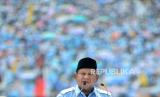 Capres nomor urut 2 Prabowo Subianto menyampaikan pidato politiknya dihadapan pendukungnya saat gelaran kampanye akbar bertajuk Pesta Rakyat untuk Indonesia Maju di Stadion Utama Gelora Bung Karno (SUGBK), Jakarta, Sabtu (10/2/2024). Dalam kesempatannya, capres Prabowo Subianto mengajak seluruh masyrakat dan pendukungnya untuk menggunakan hak suaranya pada Pemilihan Presiden 2024 pada 14 Februari mendatang. Acara Pesta Rakyat tersebut juga dihadiri sejumlah tokoh nasional, tokoh keagamaan dan artis dan musisi seperti Presiden Indonesia keenam Susilo Bambang Yudhoyono, Habib Luthfi Bin Yahya, Raffi Ahmad hingga Ahmad Dhani dan personel grup band Dewa 19. (FOTO : Republika/Thoudy Badai)