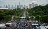 Suasana kawasan Stadion Utama Gelora Bung Karno (SUGBK) saat gelaran kampanye akbar pasangan calon presiden dan calon wakil presiden nomor urut 2 Prabowo Subianto dan Gibran Rakabuming Raka bertajuk Pesta untuk Indonesia Maju di Jakarta, Sabtu (10/2/2024). (FOTO : Republika/Thoudy Badai)