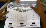REPUBLIKA.CO.ID, LAMPUNG -- Petugas KPU Bandar Lampung mensosialisasikan contoh surat suara Braille untuk disabilitas di Bandar Lampung, Lampung, Ahad (11/2/2024).