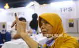 Kusmiasih Kaswih (84) lansia asal Bandung menunjukkan jari tercelup tinta usai menyalurkan suara di World Trade Center (WTC) Kuala Lumpur, Ahad (11/2/2024). Warga Negara Indonesia di Malaysia secara bersamaan menyalurkan suara Pemilu 2024 di Tempat Pemungutan Suara Luar Negeri (TPSLN) pada 11 Februari. (FOTO : ANTARA FOTO/Virna Puspa Setyorini)