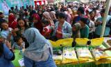 Sejumlah warga antre membeli sembako murah di Banyuwangi, Jawa Timur, Ahad (11/2/2024). Pasar murah yang menyediakan sembako seperti beras, minyak goreng, telur dan gula dengan harga di bawah harga pasar itu digelar oleh Dinas Perindustrian dan Perdagangan Pemprov Jawa Timur tersebut sebagai upaya stabilisasi harga kebutuhan pokok. (FOTO : ANTARA FOTO/Budi Candra Setya)