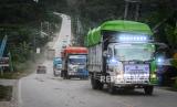 REPUBLIKA.CO.ID, KALTIM -- Sejumlah truk yang membawa logistik Pemilu 2024 melintasi kawasan Ibu Kota Nusantara (IKN) di Sepaku, Kabupaten Penajam Paser Utara, Kalimantan Timur, Ahad (11/2/2024).